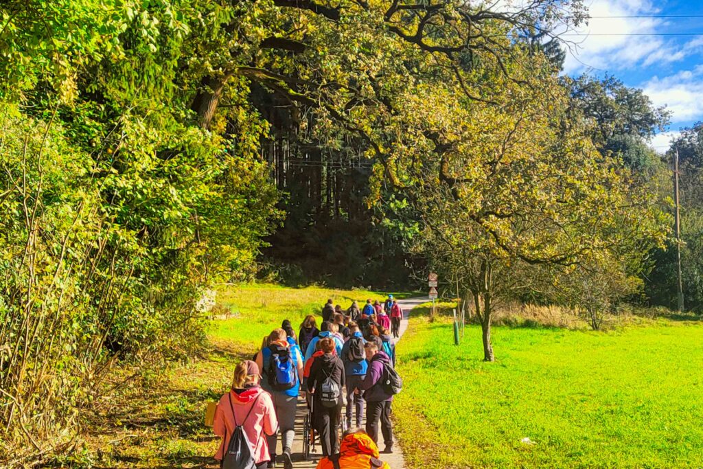 Pohodnike 7. Inkluzijskega pohoda Festivala drugačnosti je v torek, 7. 10. 2025, pred 3. osnovno šolo na Štibuhu pričakalo prijetno lepo jesensko jutro. Lepo število pohodnikov (73) iz vrst učencev 3. osnovne šole, varovancev CUDV Črna VDC Slovenj Gradec, SONČEK – center Ivančica, dnevnega centra OZARA. Društva paraplegikov Koroške in prostovoljcev iz vrst Planinskega društva Slovenj Gradec in zavoda MOCIS- večgeneracijski center je nagovoril organizator Stojan Rozman. Pohodniki so se razdelili na tri skupine. Krajša pot je pohodnike vodila po Štibuhu in kolesarski poti navzdol čez most čez Suhodolnico na športno igrišče v Starem trgu in nazaj na izhodišče. Druga skupina je šla z glavnino ali do Merkurja ali na Legen in se tu vrnila do svojih centrov.