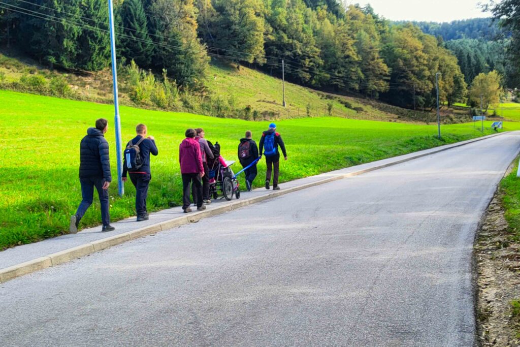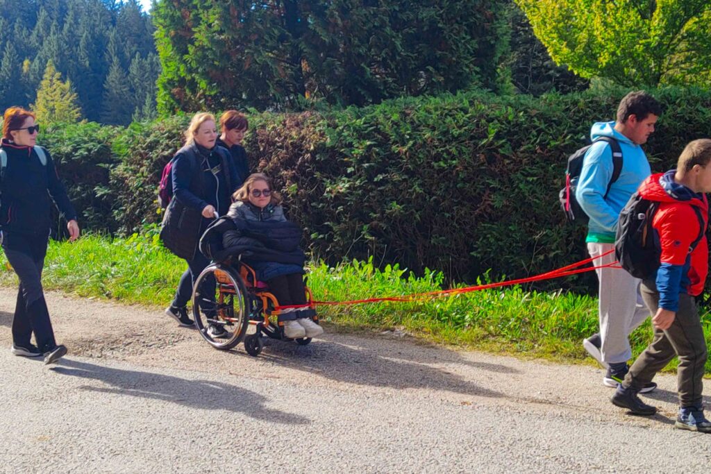 Pohodnikom na invalidskih vozičkih so pomagali skupaj prostovoljci in varovanci, čista inkluzija. Prehodili oz. prevozili smo 9 kilometrov. Spremljevalnemu vozilu letos ni bilo potrebno prevažati utrujene ali koga zaradi tehničnih težav invalidskega vozička, tako, nas je samo varovalo na nevarnejših delih poti in nas oskrbovalo z vodo in malico. Krasno vreme, prijetna družba, pot primerna za vse – sestavine za popoln inkluzijski pohod.